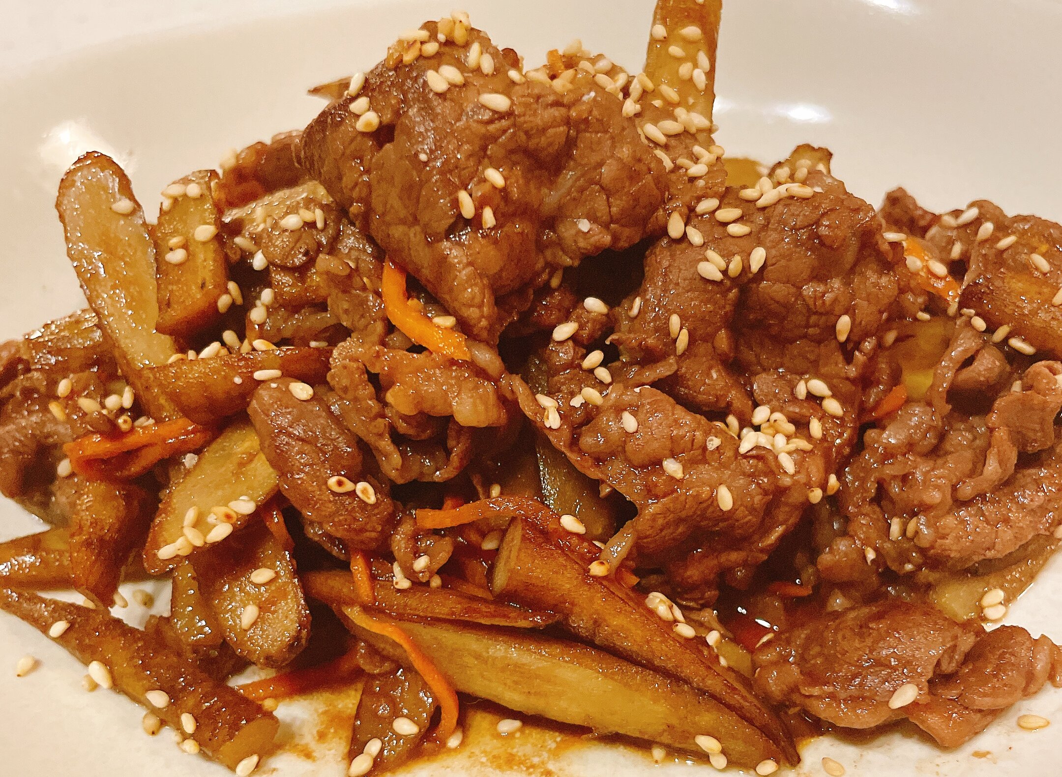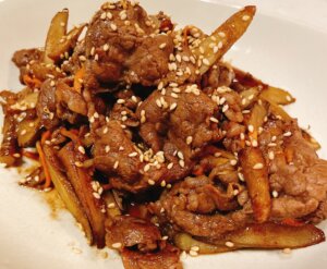 今日のレシピは、牛こま肉を使ったシンプルでご飯がすすむ炒め物をご紹介します。ささがきごぼうと人参の食感がアクセントになり、香ばしいごまの風味がたまらない一品です。短時間でできるので、忙しい平日のおかずにもピッタリ!