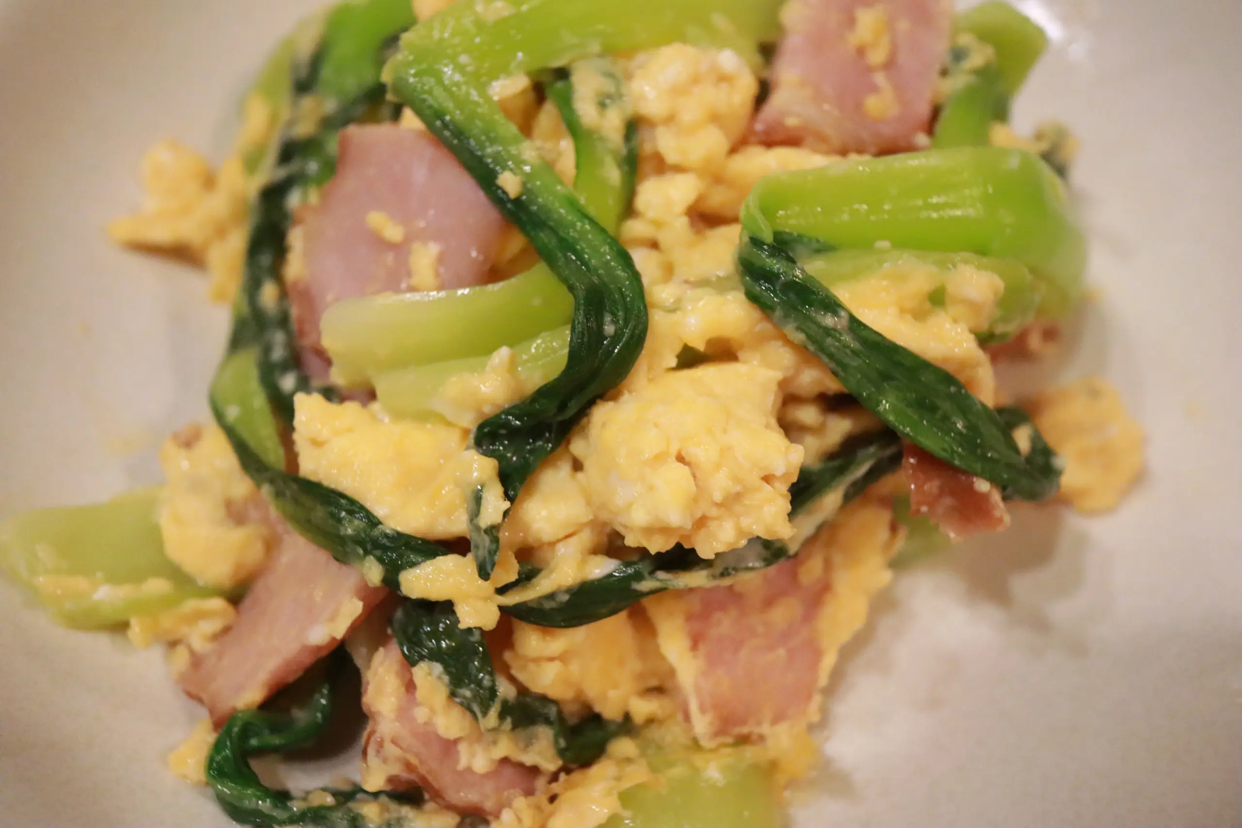 🥢 卵・ベーコン・チンゲン菜の炒めもの(シンプルでやさしい味)